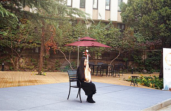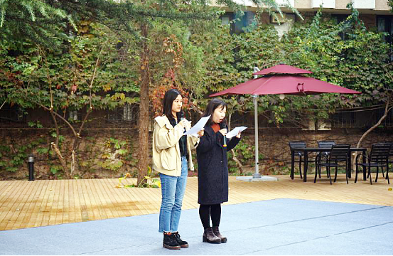 北航的秋天被银杏叶和白蜡树染成金黄色,球盟会旁的荷花池更是“湖光秋月两相和,潭面无风镜未磨”。“雅集”在古文中指文人雅士吟咏诗文、议论学问的集会。将“雅集”带进充满人文精神的校园美景中。虽不能相较于先贤因时、因地、因主题重新创作诗词,但广大文友也以葫芦丝、琵琶、小提琴、诗朗诵等演绎了一次不一样的“人文雅集”。