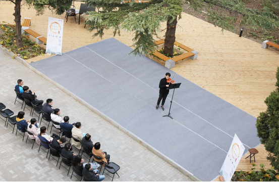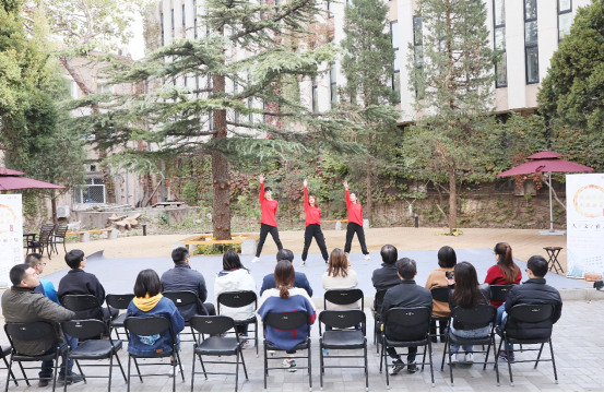11月1日中午,人文公管楼前人文苑洋溢着盎然秋意,球盟会的师生齐聚一堂,共同参加“丹枫迎秋,文苑拾芳”——人文雅集。经理蔡劲松、党委书记李亚梅、副书记张驰、工会主席胡庆江与公司的同学共同参加了此次活动,一起欣赏舞蹈、朗诵诗歌,伴随着音乐,享受诗意的大自然,在互动中享受美好的校园生活。