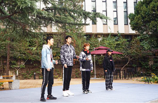 在这个温暖的中午,人文苑不同于往日的静谧,老师同学们齐聚一堂,充满了欢声笑语。阿卡贝拉清唱社用一首《追光者》拉开了“人文雅集”的序幕。武洋老师带来诗朗诵《秋天的歌》让我们感受到秋天这个金色季节的美。小提琴独奏《kiss the rain》给大家描绘了一幅雨水落在脚下,溅起微微水花,碎成一片云雾的画卷,《青花瓷》独奏则将这幅画卷具象化为烟雨江南,《秋之韵》叙一带江山如画,风物向秋潇洒;《荷塘月色》奏月染湉湉色,风抔淡淡香。在舞蹈《我和我的祖国》后,进入诗词游戏环节。