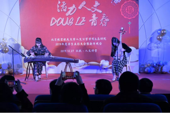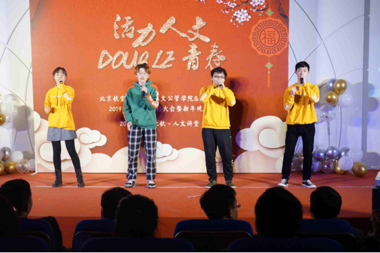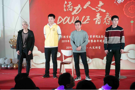 开场视频《人文记事》回顾了两院2019年的大事记,晚会紧接着在“优雅大气、铿锵有力”的双排键演奏《金色狂想曲》中拉开序幕。晚会共分为三个篇章,第一篇章为“盎然·启航”篇:伴随着超燃的音乐,又飒又酷的AeroDance Crew舞团闪亮登场,干脆利落的舞蹈动作,热情急促又富有动感的节奏,让大家不由自主地跟着节拍一起摇摆;乐器弹唱《永远的童年》温柔舒缓,让人不禁想起童年那美好的时光;小品《外面的世界》幽默诙谐又温暖可爱,引起了师生们的强烈共鸣。精彩的表演节目穿插了激动人心的颁奖和抽奖环节,暖场小游戏进一步将晚会气氛推向了高潮。