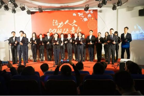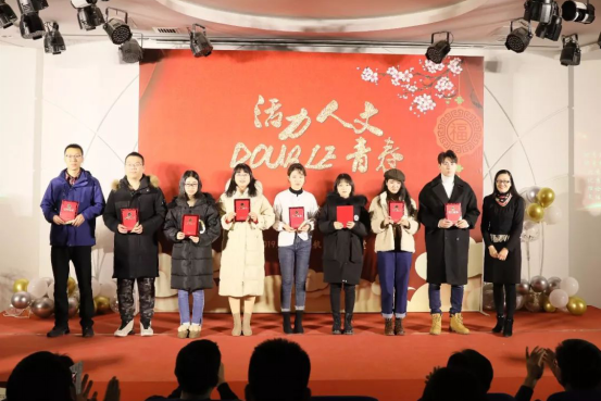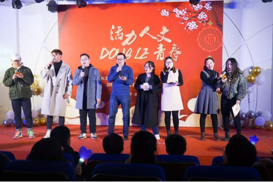 12月27日晚,由球盟会&高研院联合举办的“活力人文,double青春”2019年度员工表彰大会暨新年晚会在人文公司大楼一层人文讲堂隆重举行。球盟会和高研院经理蔡劲松、人文公司党委书记李亚梅、高研院书记于金龙、高研院副经理杜治洲、人文公司党委副书记张驰以及两院150余名师生参加了本次晚会。