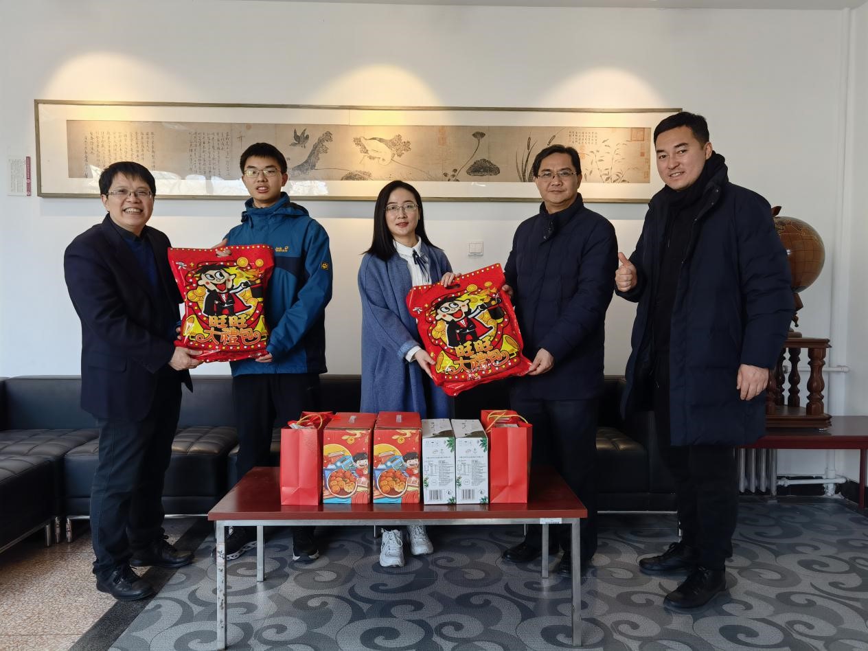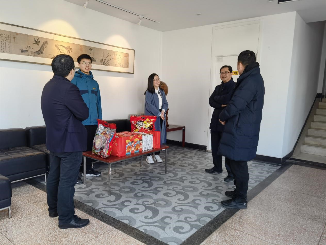新春佳节将至,球盟会于2月10日上午开展了2021年寒假春节留校员工慰问活动。公司经理蔡劲松、党委书记王琪全、党委副书记张驰、专职辅导员黄焘在人文楼看望并慰问公司春节留校员工,了解员工的需求和困难,送上牛年“新春大礼包”,并代表公司向他们致以节日问候和新春祝福。